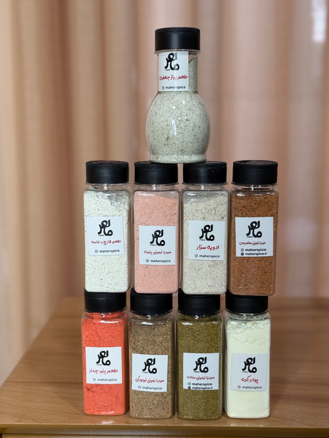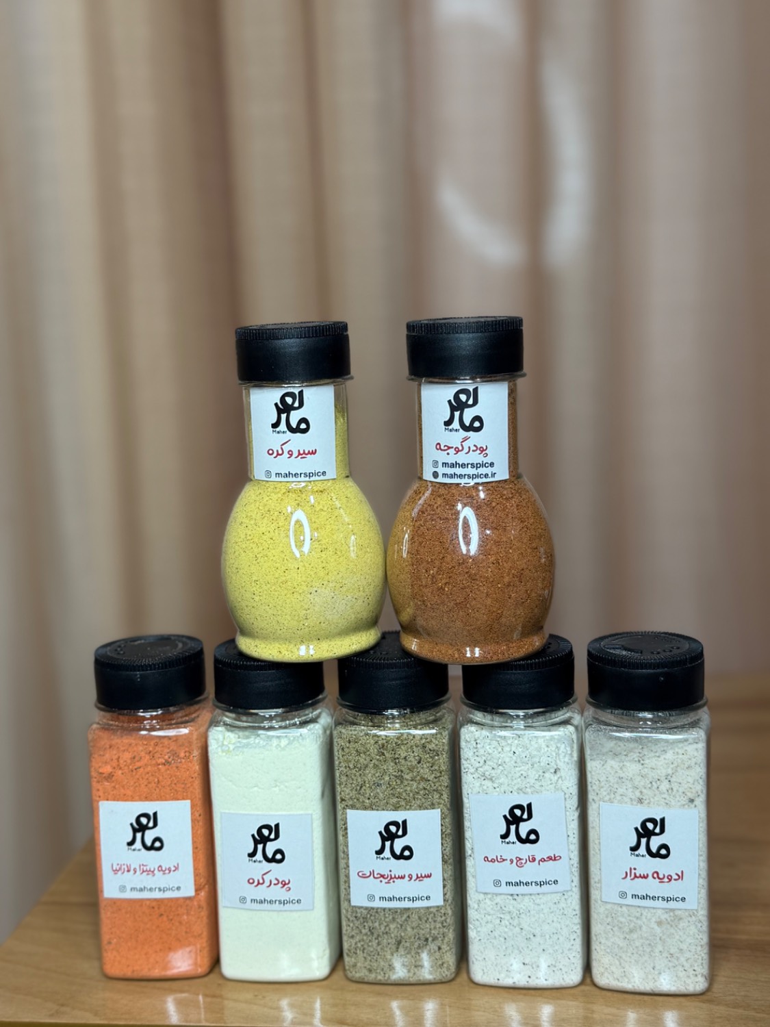 پک اقتصادی و ویژه ادویه و چاشنی سالاد تازه آسیاب شده شامل ۶ نوع ادویه مخصوص ماهر،جمعا ۷۴۰ گرم۳۸۹٬۰۰۰ تومان
